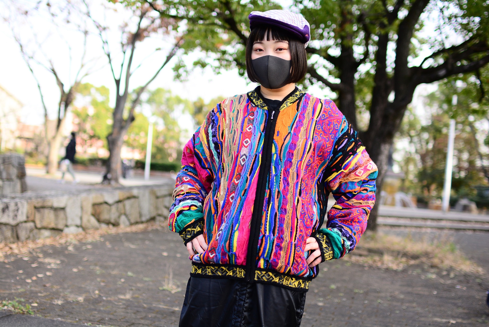 ジャケット★Vintage COOGI ウール 立体編み 3D ニット ノーカラー ジャケット マルチカラー (メンズ古着) ¥16.500(TAX IN)