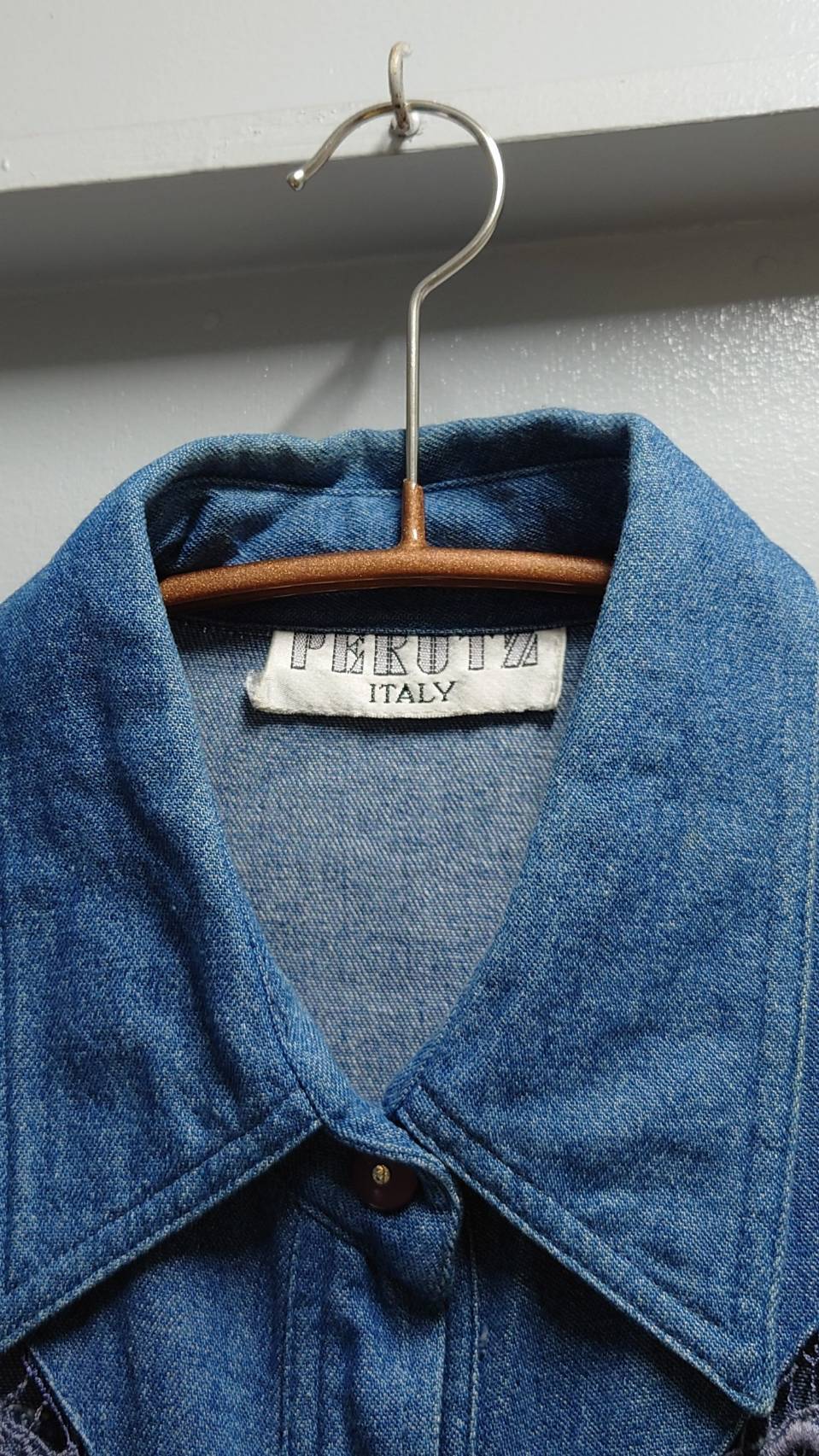 レースの切り替えが目を惹くレトロでかわいいデニムシャツ。