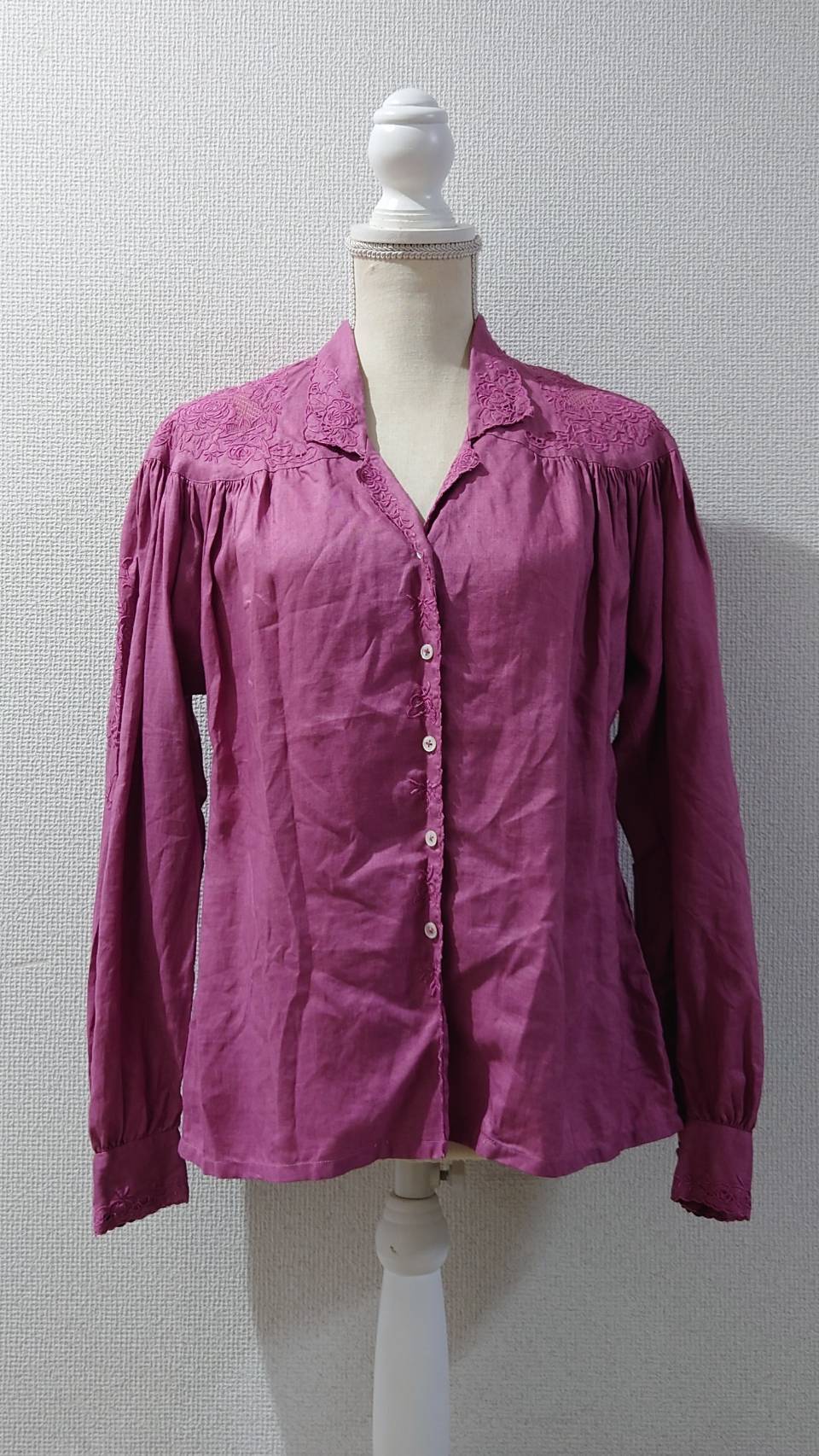 80’s Carole Little “Flower Embroidery” リネンブラウス サイズP