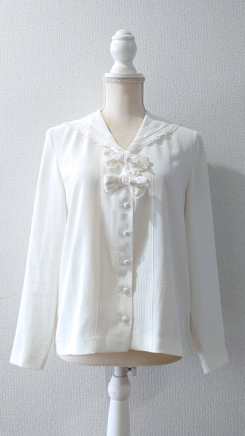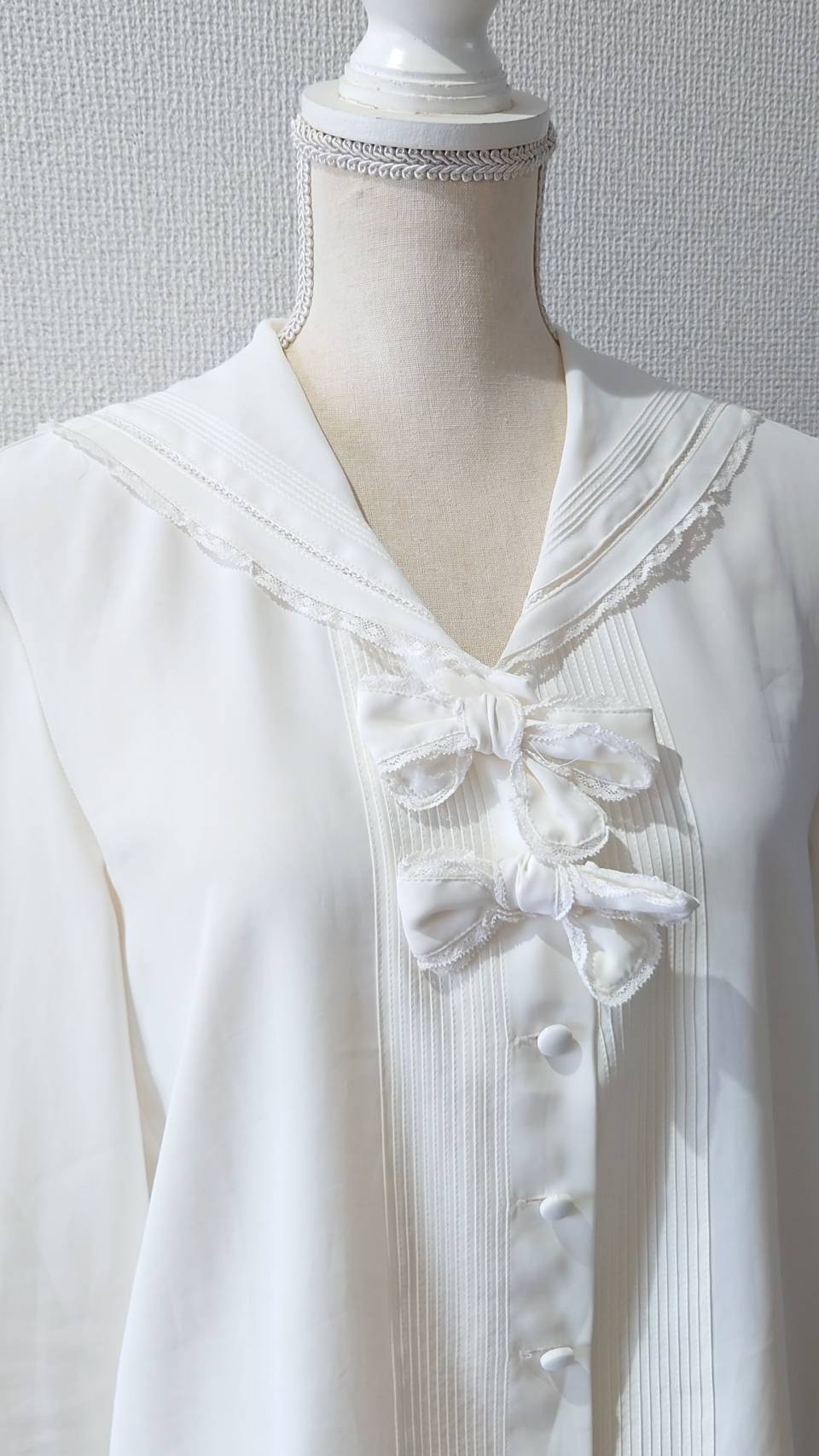 セーラー襟とリボンの縁には細やかなレースの装飾