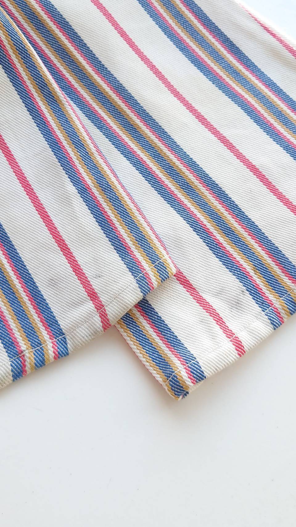 コットンギャバジンのように密に織り込まれた風合い豊かな生地に爽やかな好配色のマルチストライプ