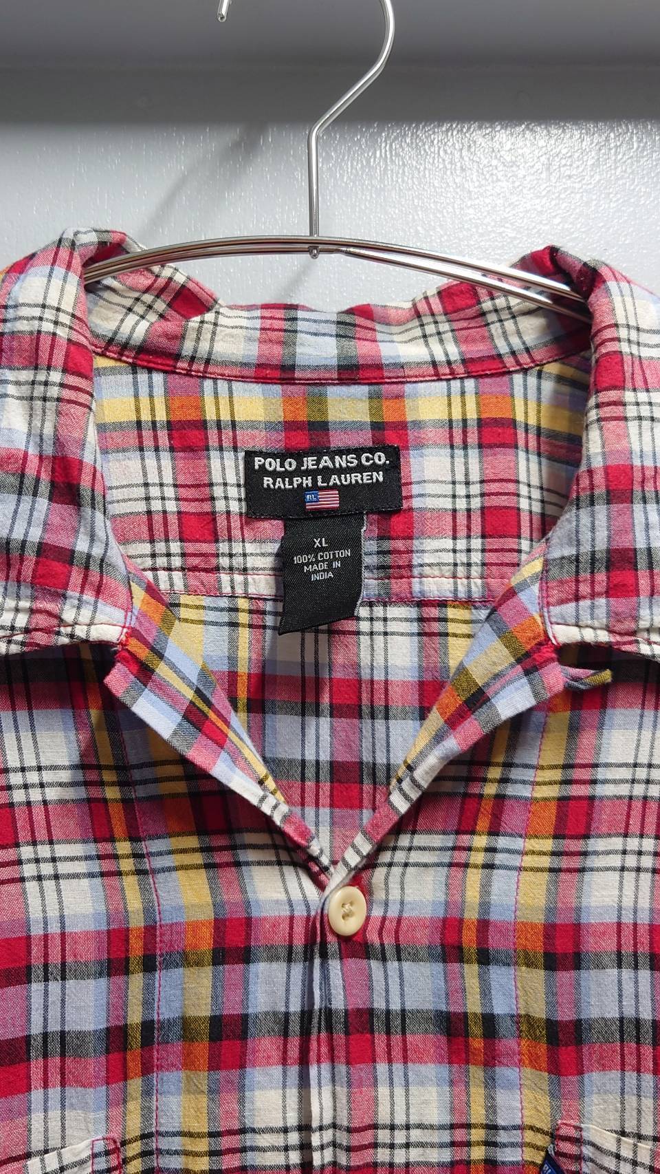 90’s POLO JEANS RALPH LAUREN “Indian Cotton” オープンカラー 半袖 チェックシャツ XL