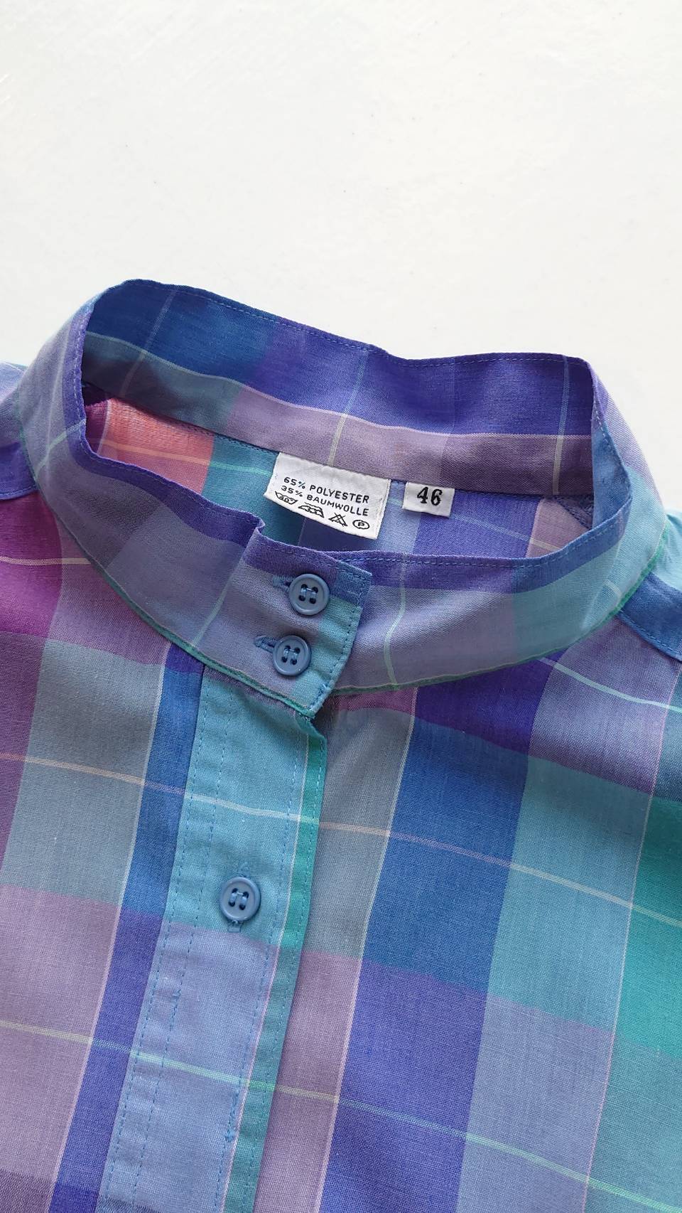 EU Vintage スタンドカラー チェックシャツ サイズ46