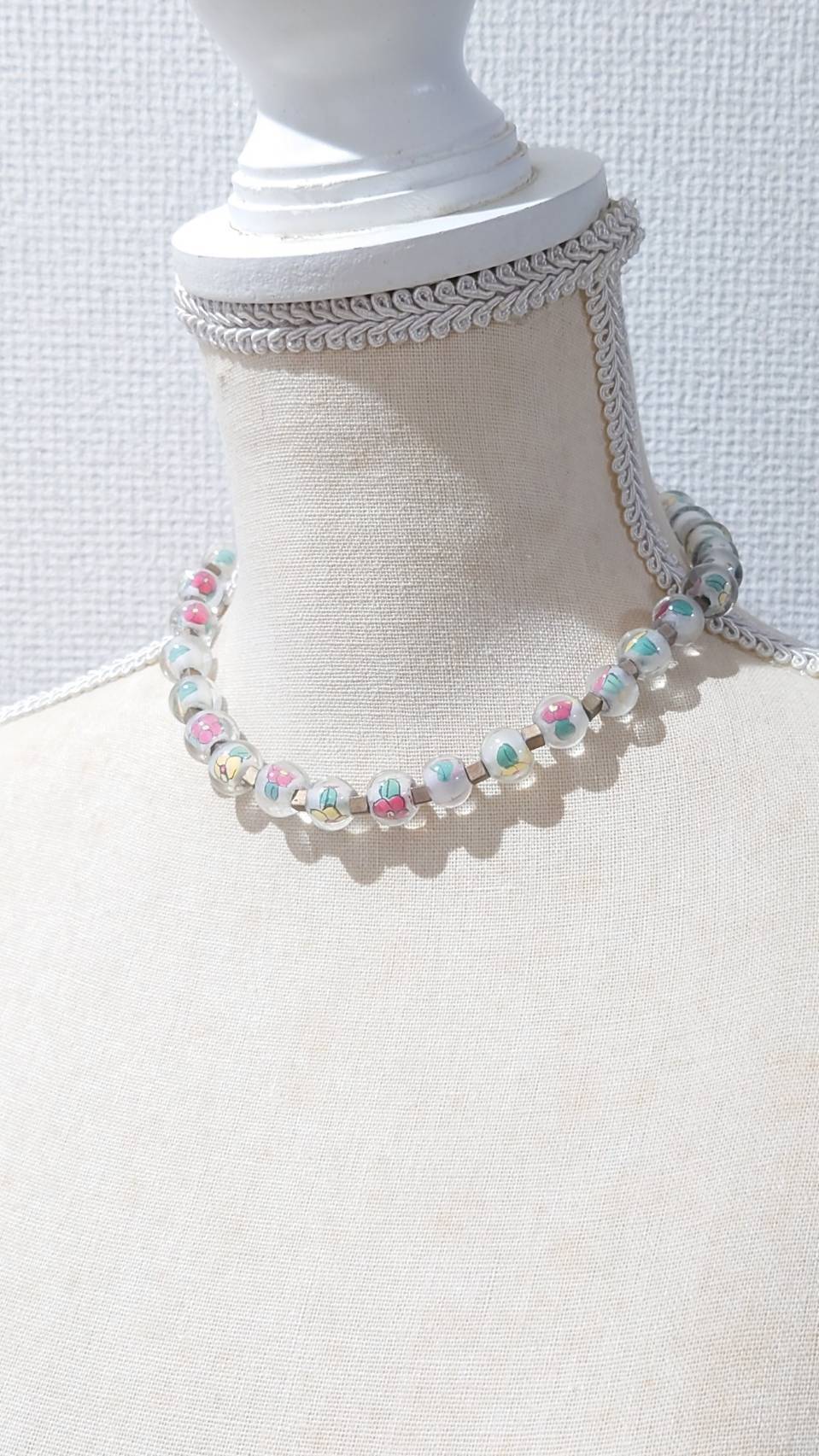 色とりどりのお花がとってもかわいいビーズネックレス♡