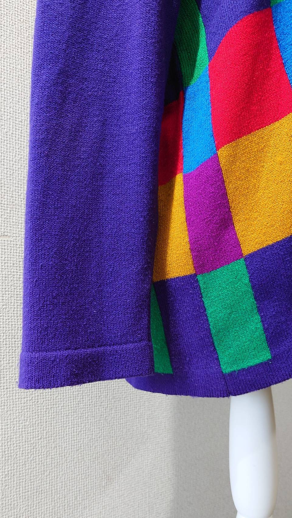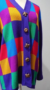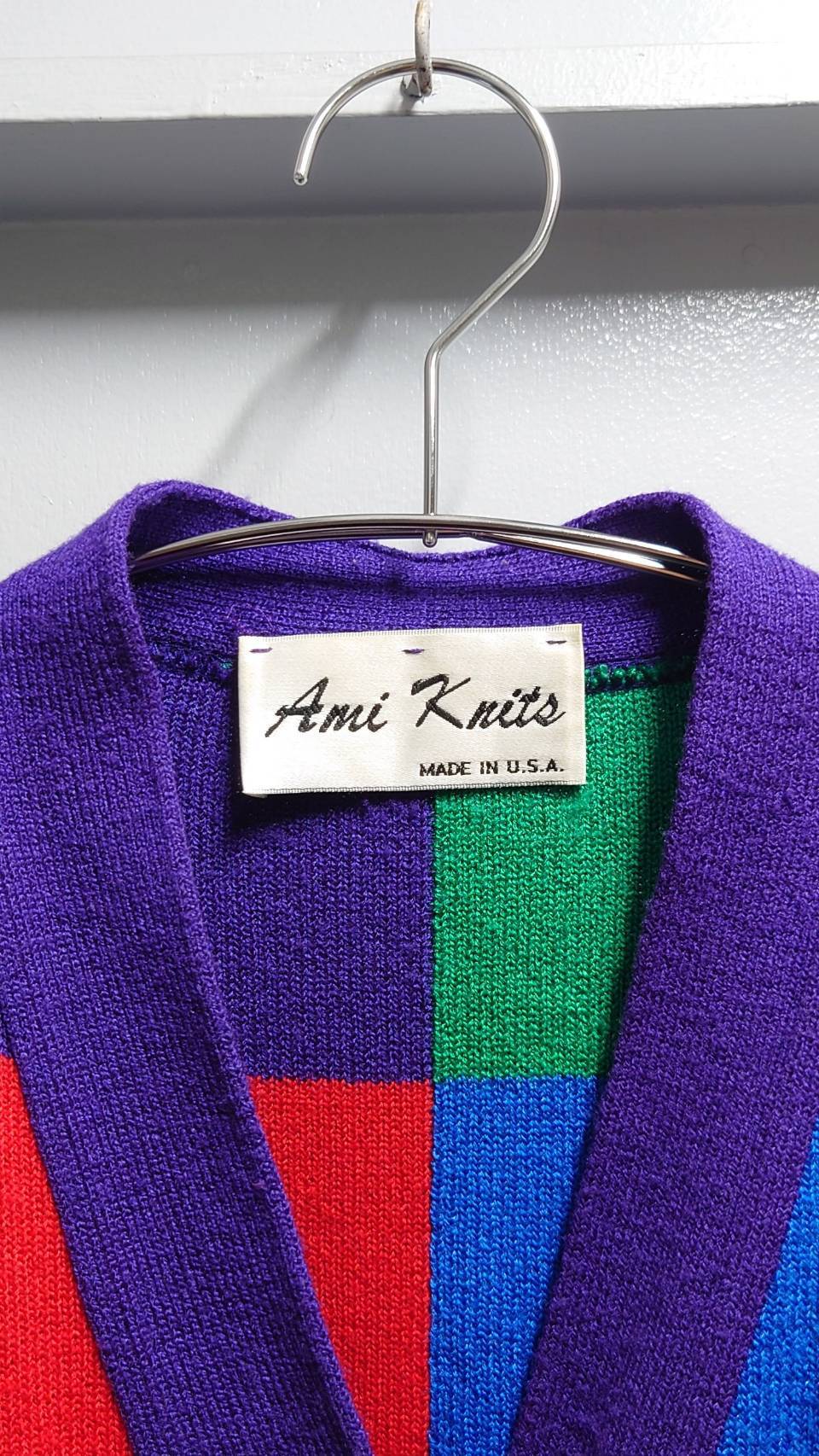 80’s Ami Knits USA製 マルチカラー ニットカーディガン L-XL相当 アメリカ製