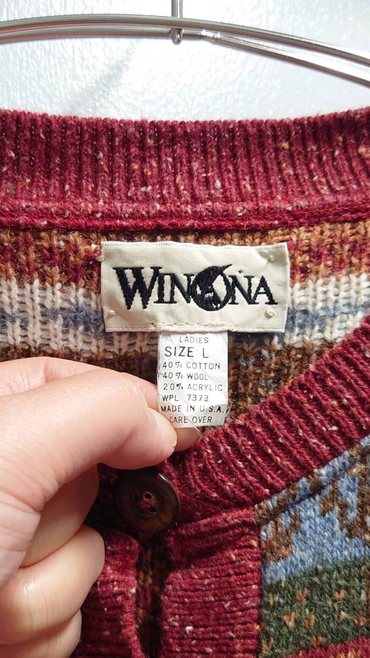 80-90’s Winona USA製 “Trees of All Seasons” ニットカーディガン L アメリカ製