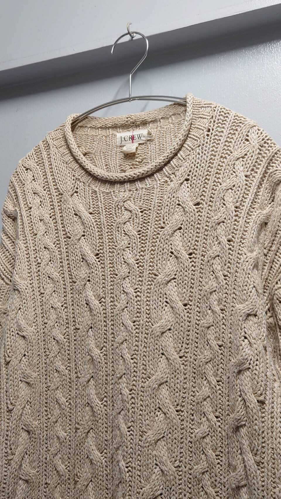 90’s J.CREW “Cotton×Linen” ロールネック ケーブルニットセーター S
