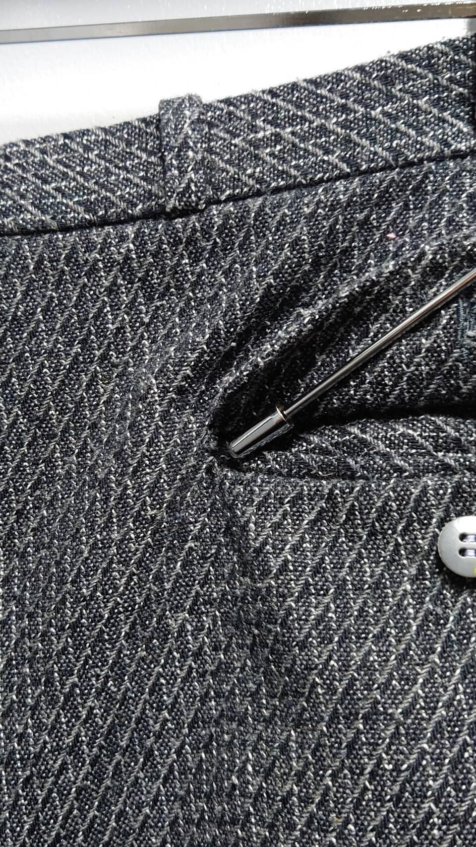 状態:ウエストの裏地部分に穴、バックポケットの縁に目立たないくらいのリペアがあります。