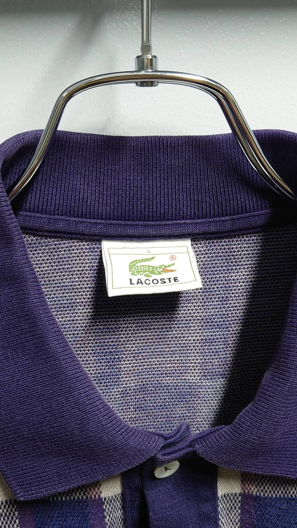80-90’s LACOSTE “DEVANLAY” チェック柄 コットンニット 長袖ポロシャツ サイズ4