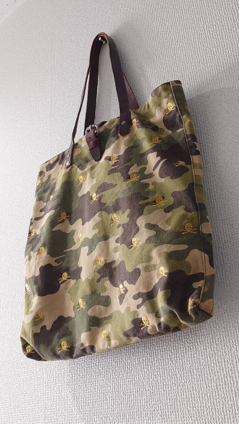 絶妙にフェードした迷彩柄のコットンキャンバスにしなやかなレザーハンドル