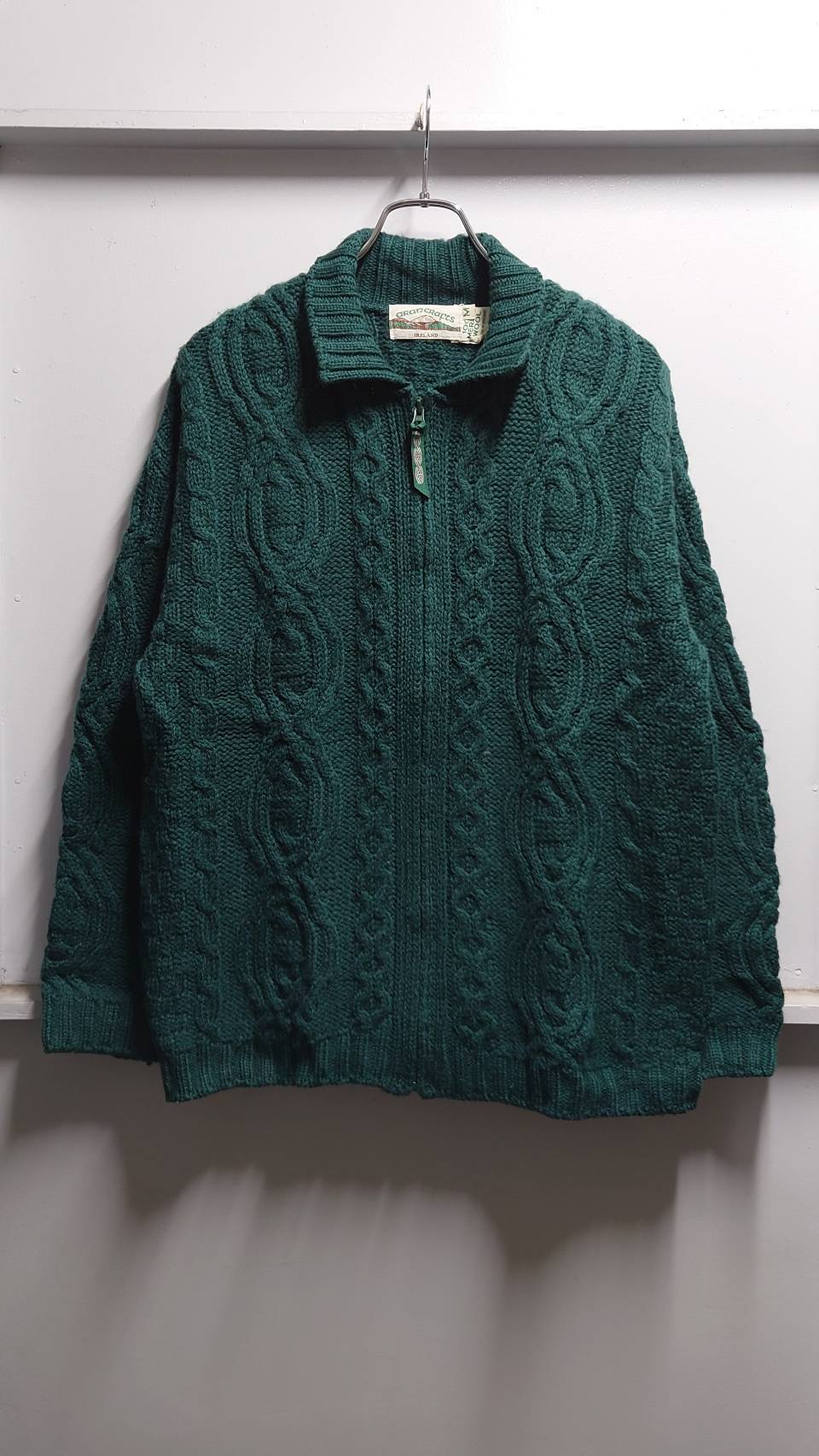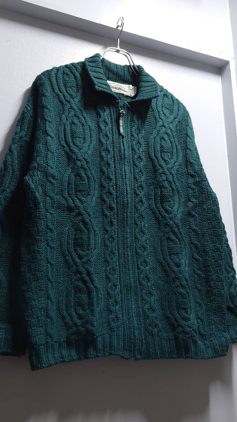 90’s Aran Crafts アイルランド製 “Merino Wool” ジップアップ フィッシャーマンセーター M