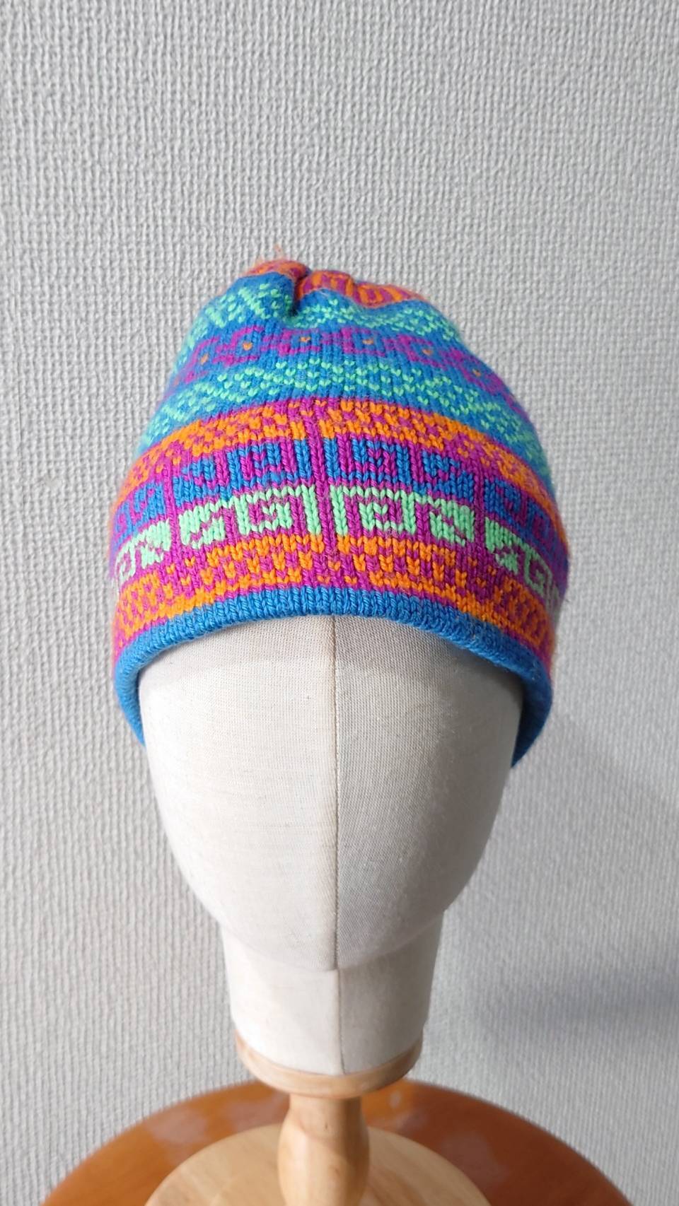 柄も色使いもとってもかわいいハンドニットビーニー♡