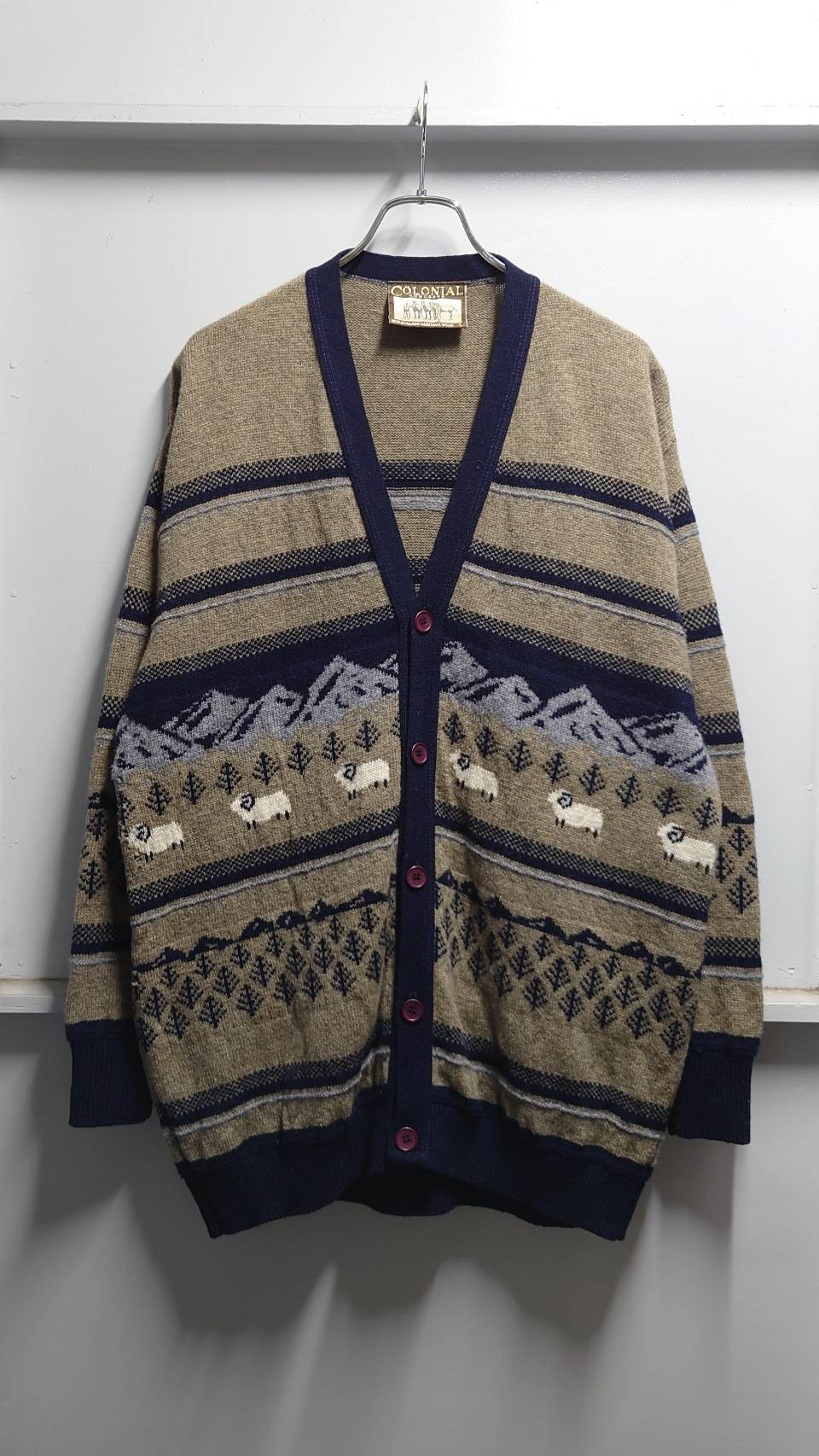 80-90’s Colonial Concepts ニュージーランド製 “Sheep” ウール ニットカーディガン L