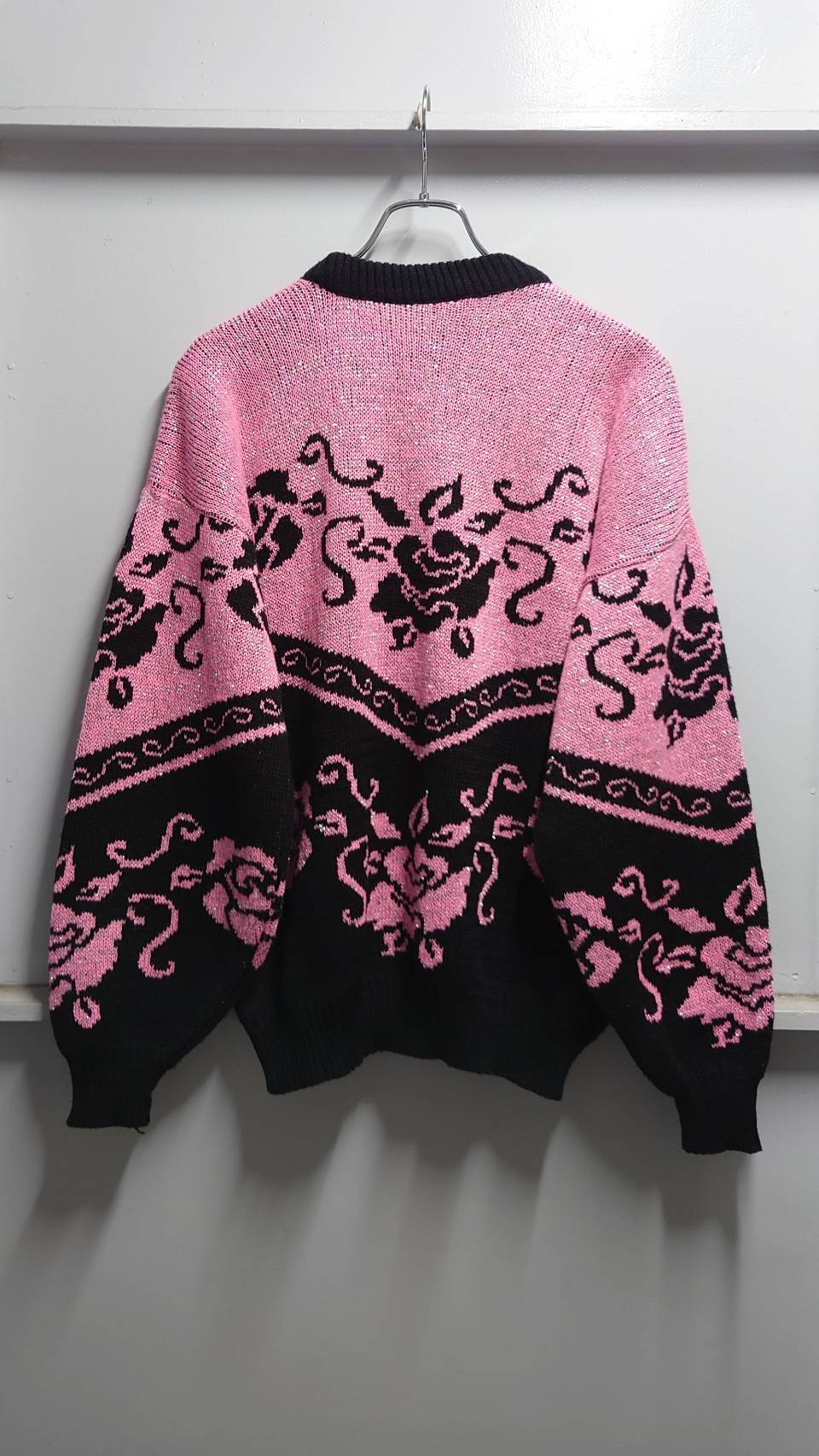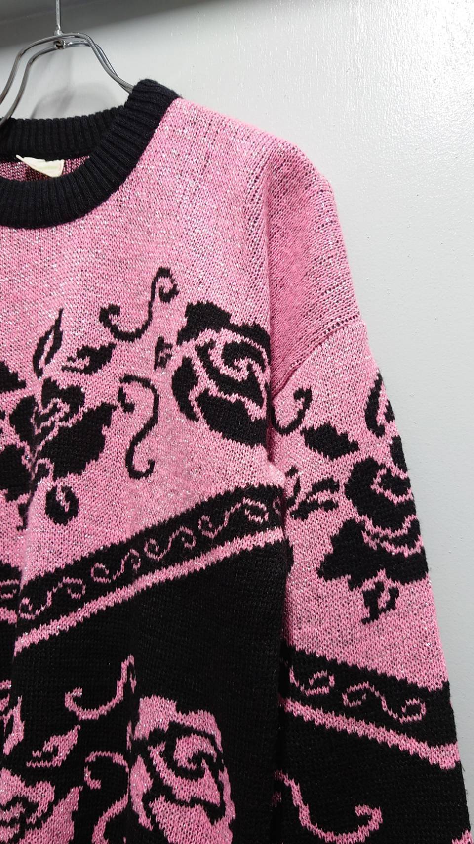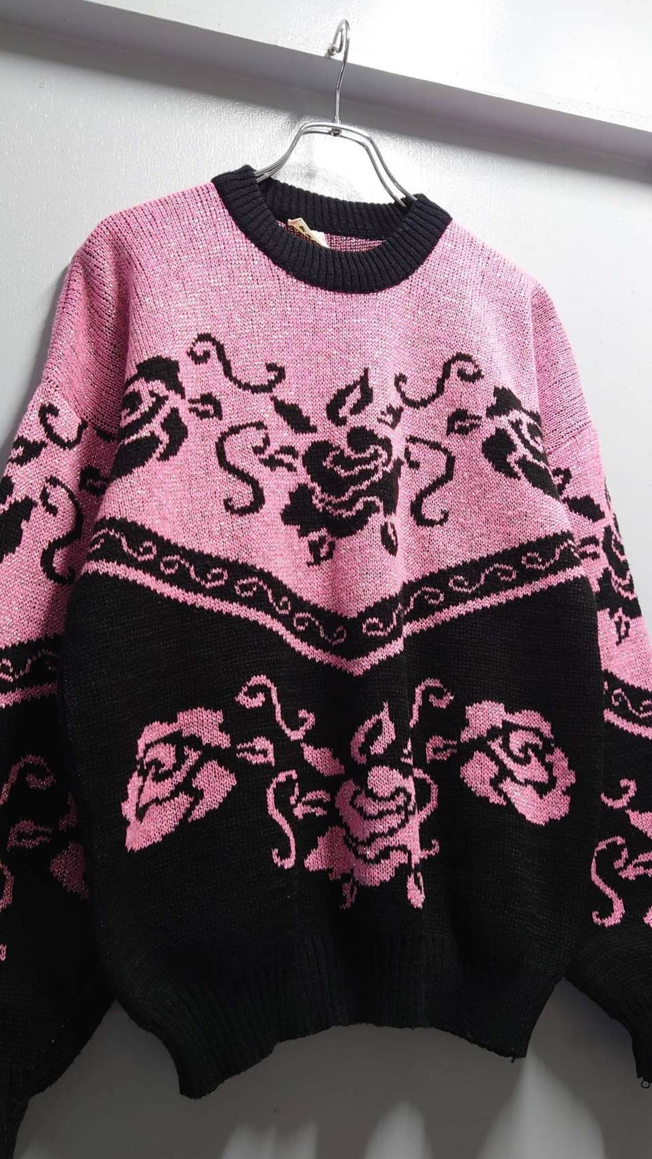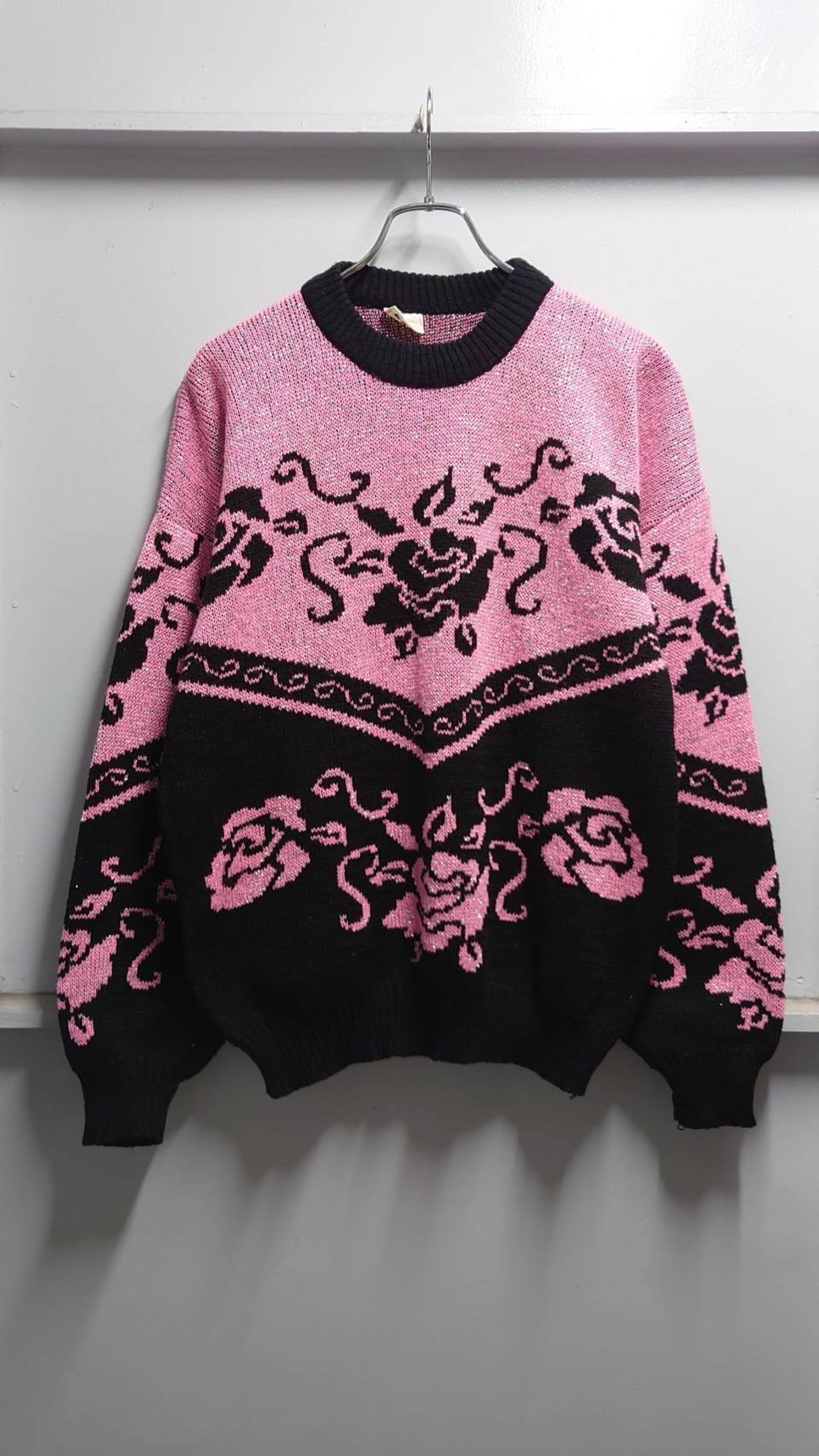 EU Vintage “Rose Pattern” グリッターニット セーター M