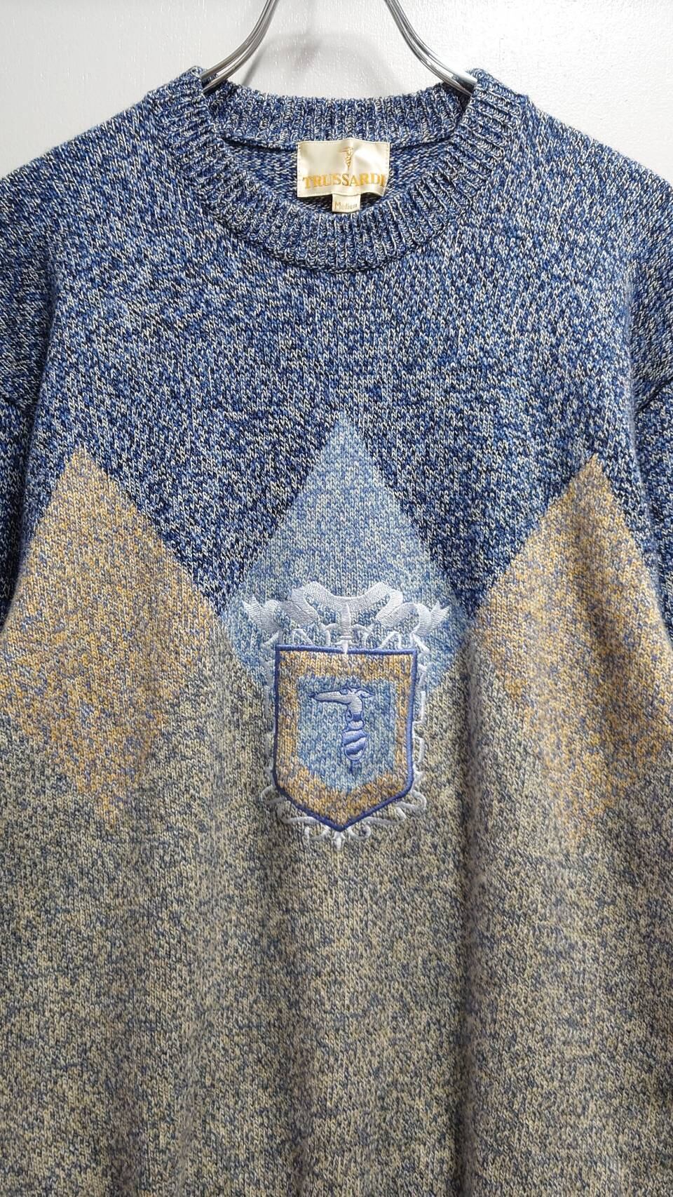 90’s TRUSSARDI メランジニット ロゴセーター M