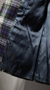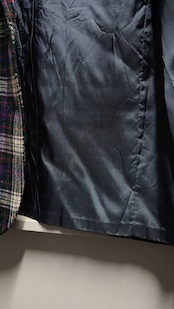 状態:右前身頃の裾付近に小さなダメージ(穴にはなっていません)、裏地の下部に細かいシミがあります。