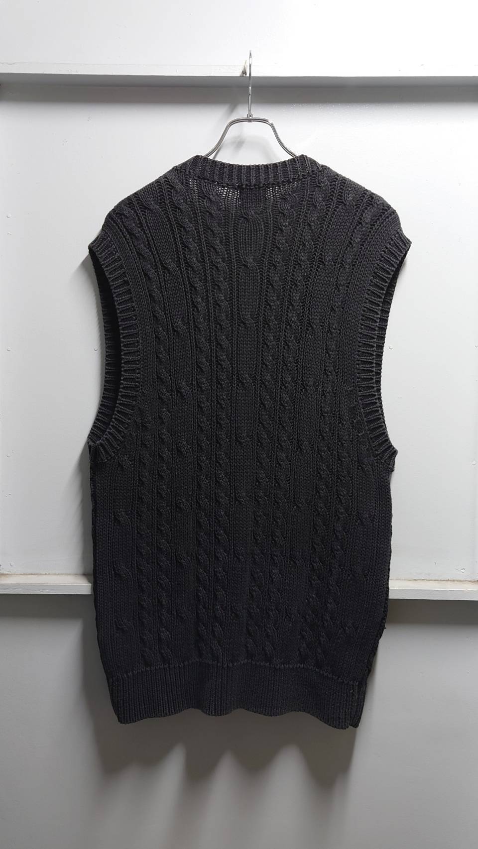 ナチュラルな素材感が活きる雰囲気の良いフェードブラックのケーブルニットベスト!