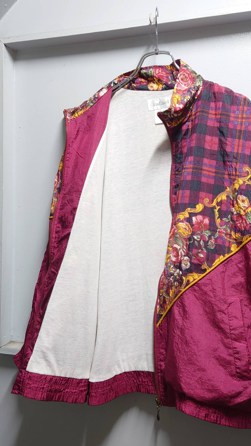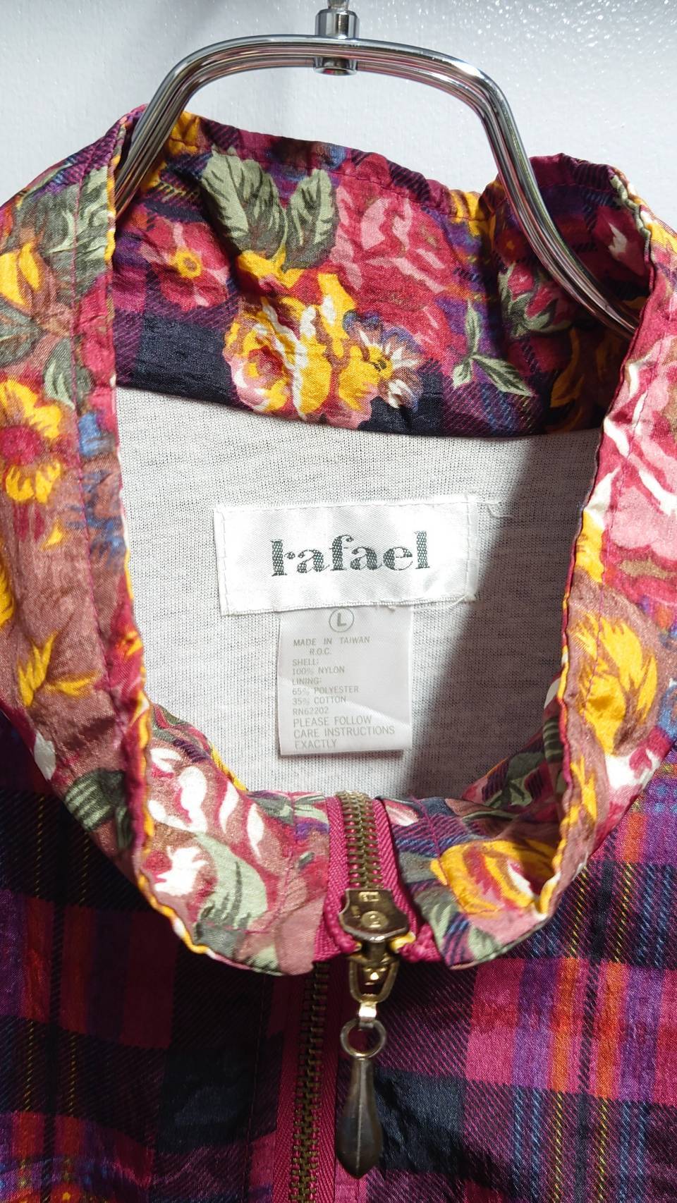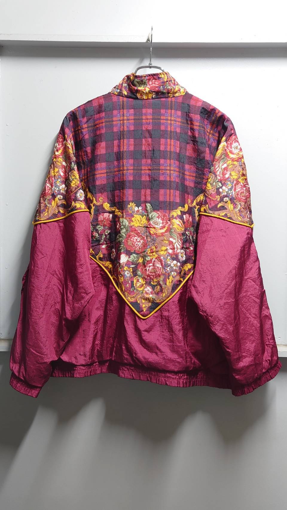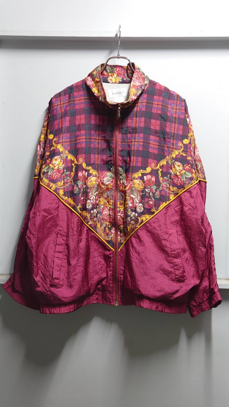 90’s Rafael “Flower×Tartan” Full-zip Nylon Jacket L