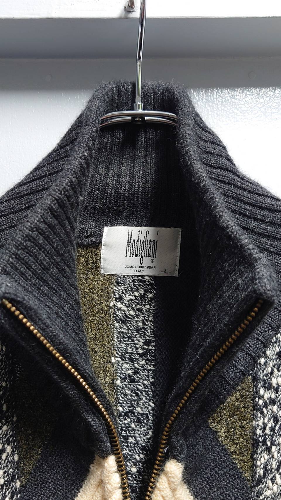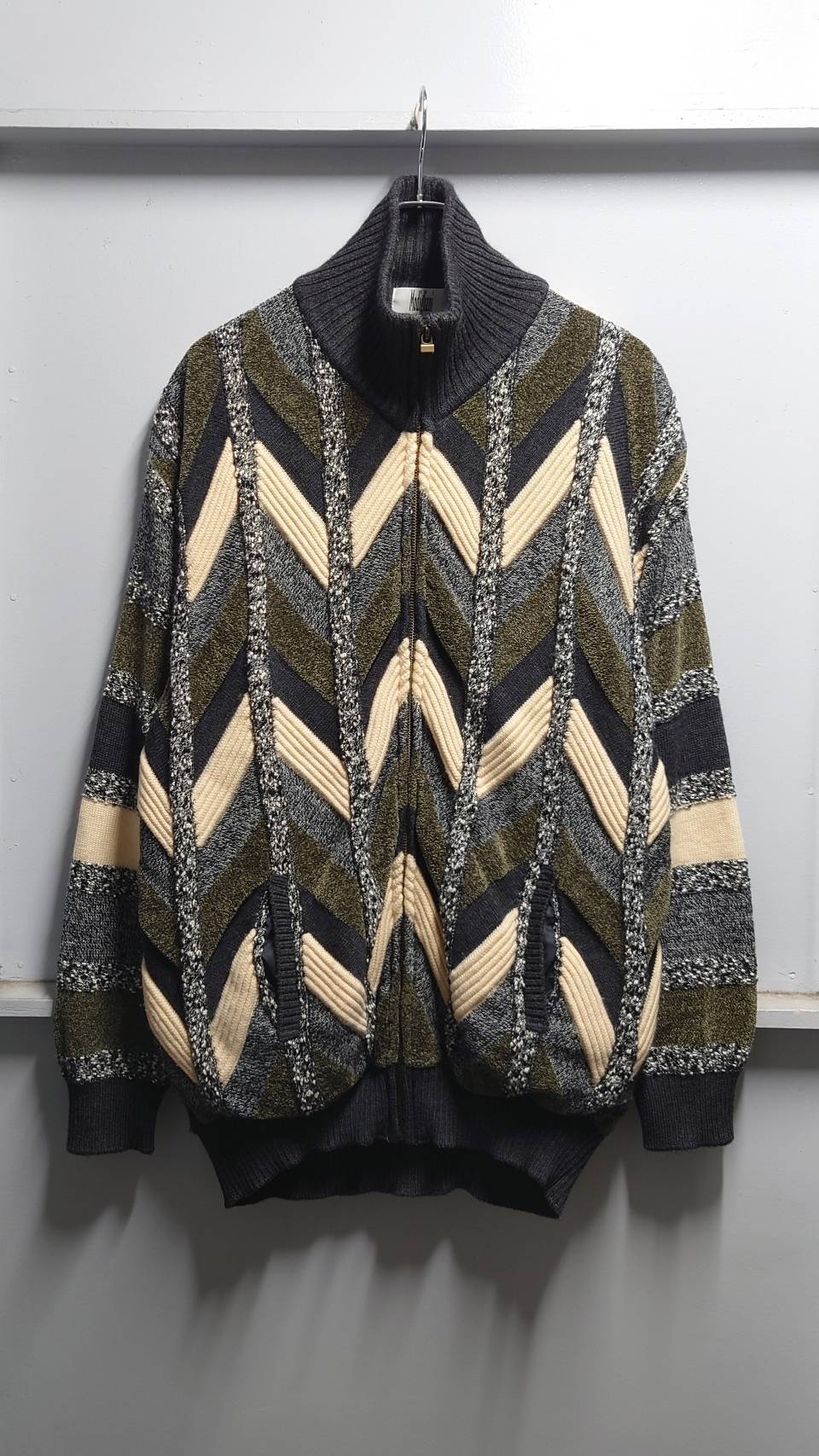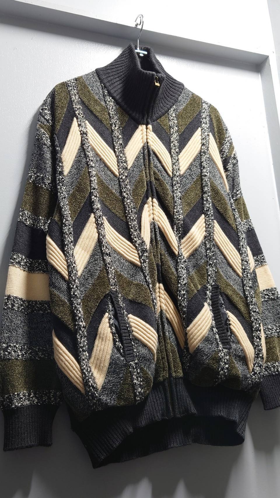 90’s Modigliani 3Dニット フルジップセーター L