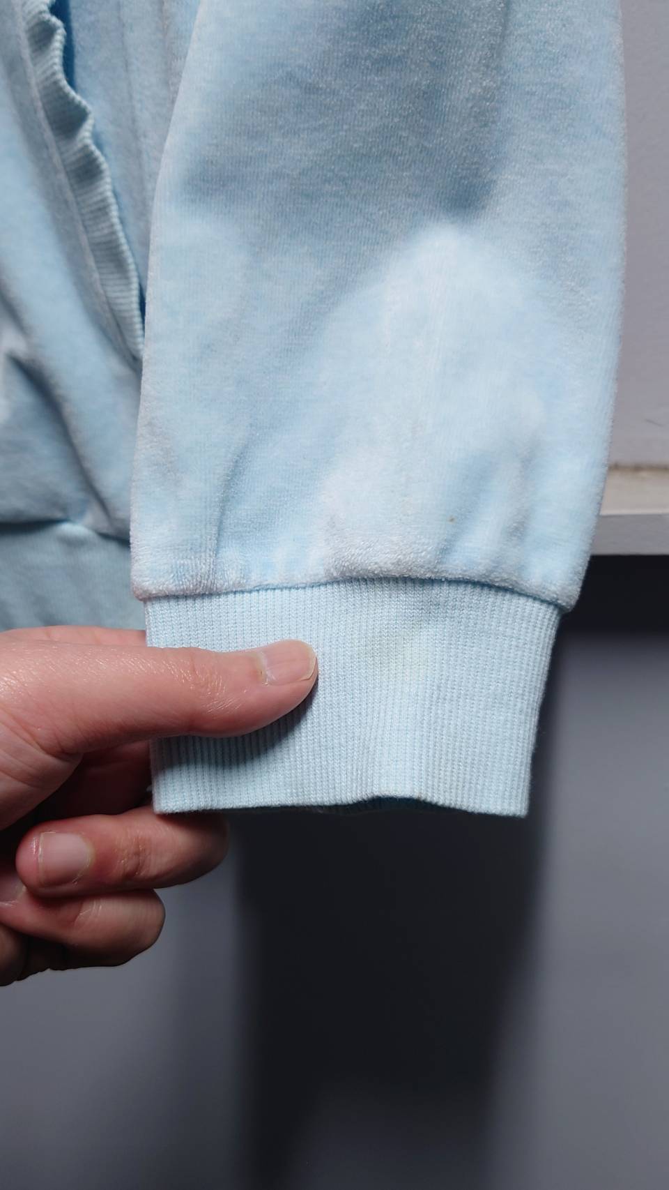状態:裾や袖先のリブ周りに小さな汚れやシミがあります。