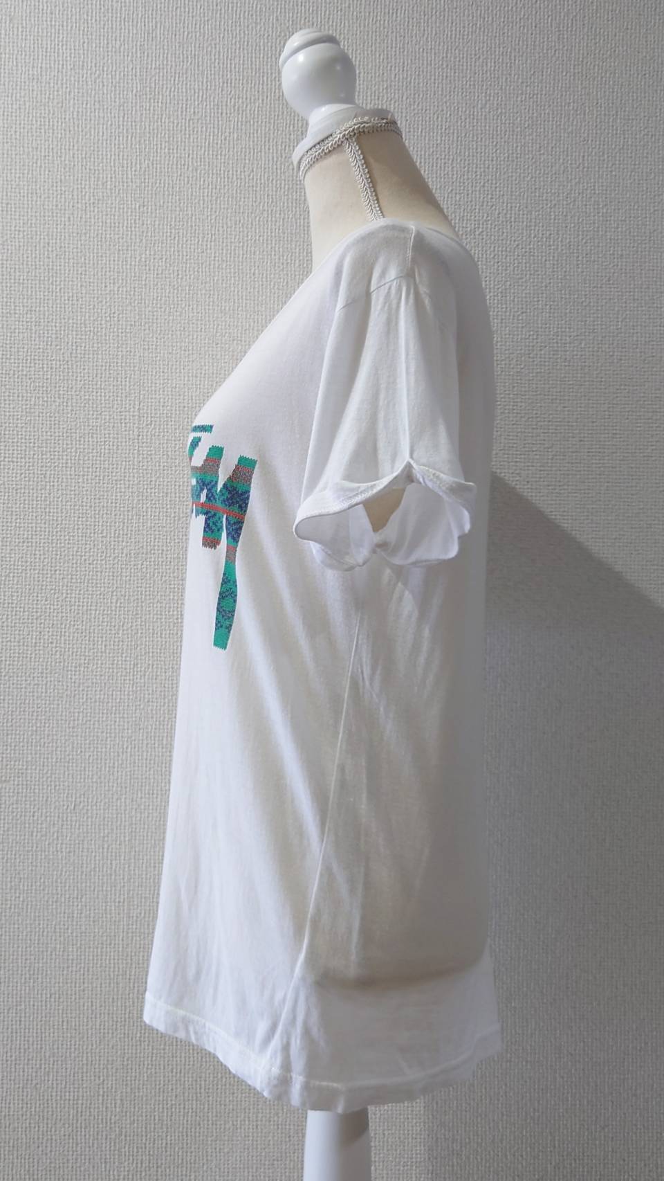 STUSSY ロゴプリント Uネック Tシャツ ホワイト XS 半袖