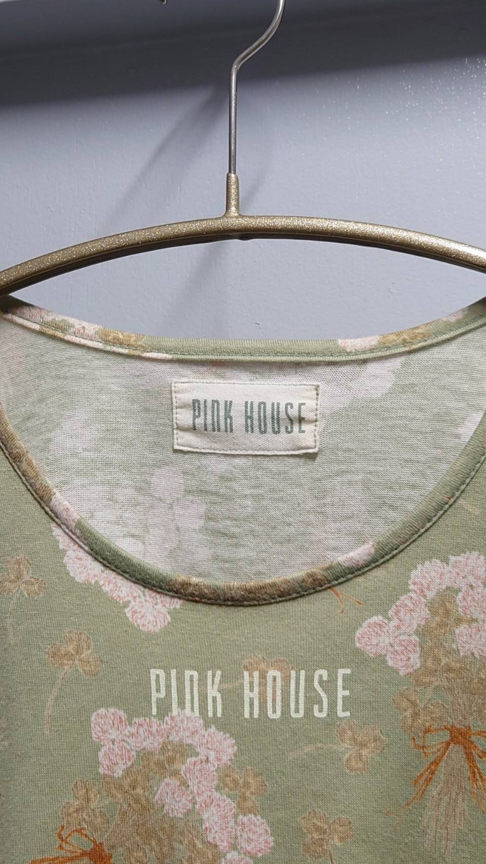 PINK HOUSE 花柄 Tシャツ ダスティーグリーン S-M相当 半袖 総柄 ピンクハウス
