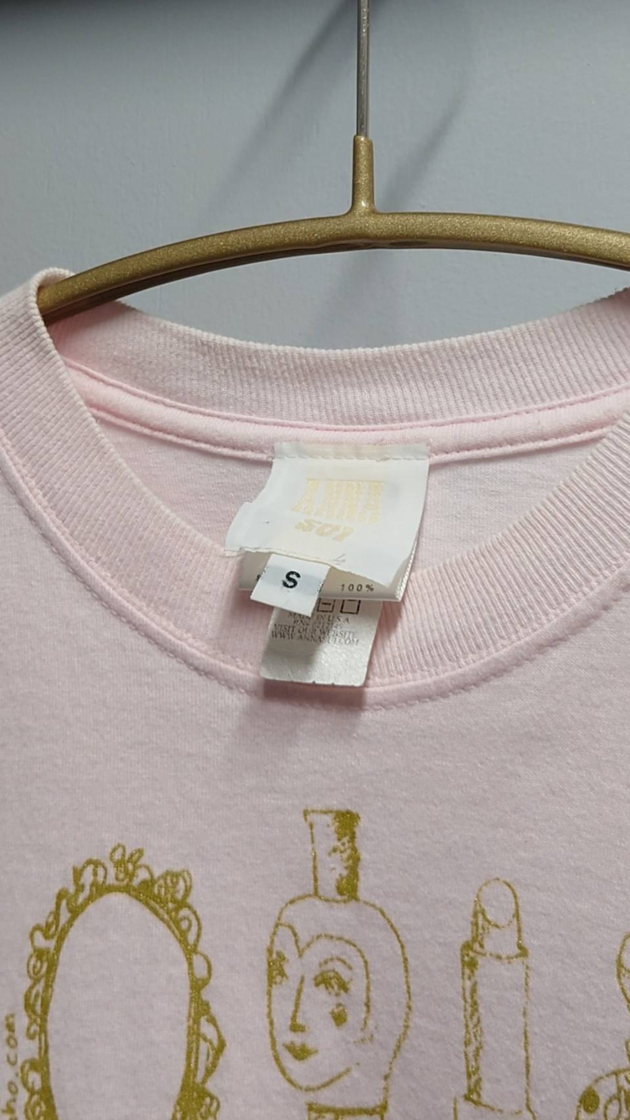 ANNA SUI USA製 コスメプリント Tシャツ ライトピンク S 半袖 アナスイ