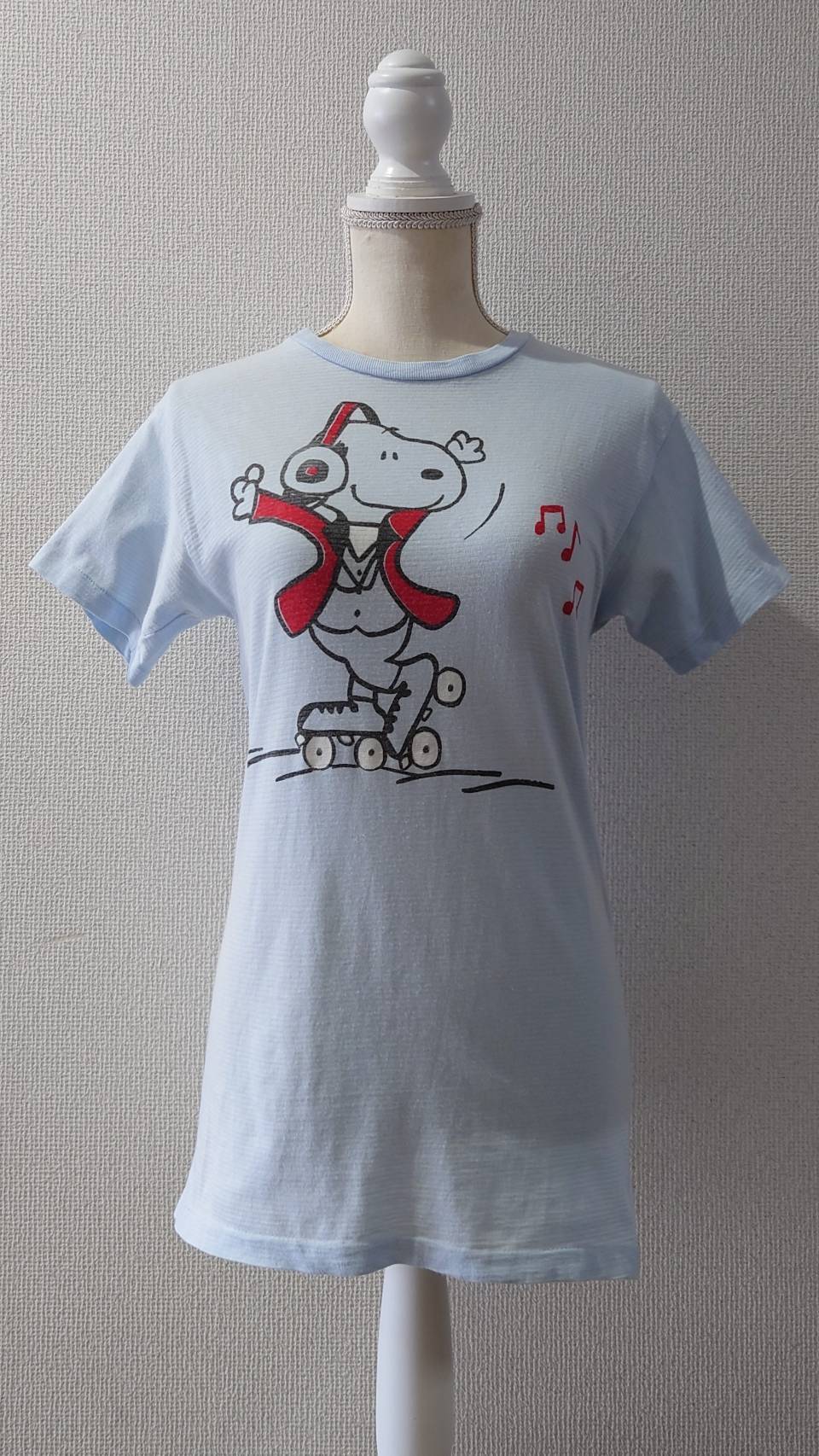 1973’s MADE IN ITALY シングルステッチ スヌーピープリント Tシャツ サックスブルー L 半袖