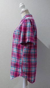 実寸的にはメンズSくらい。生地がオックスフォードなのもちょっぴり意外でかわいい半袖シャツです。