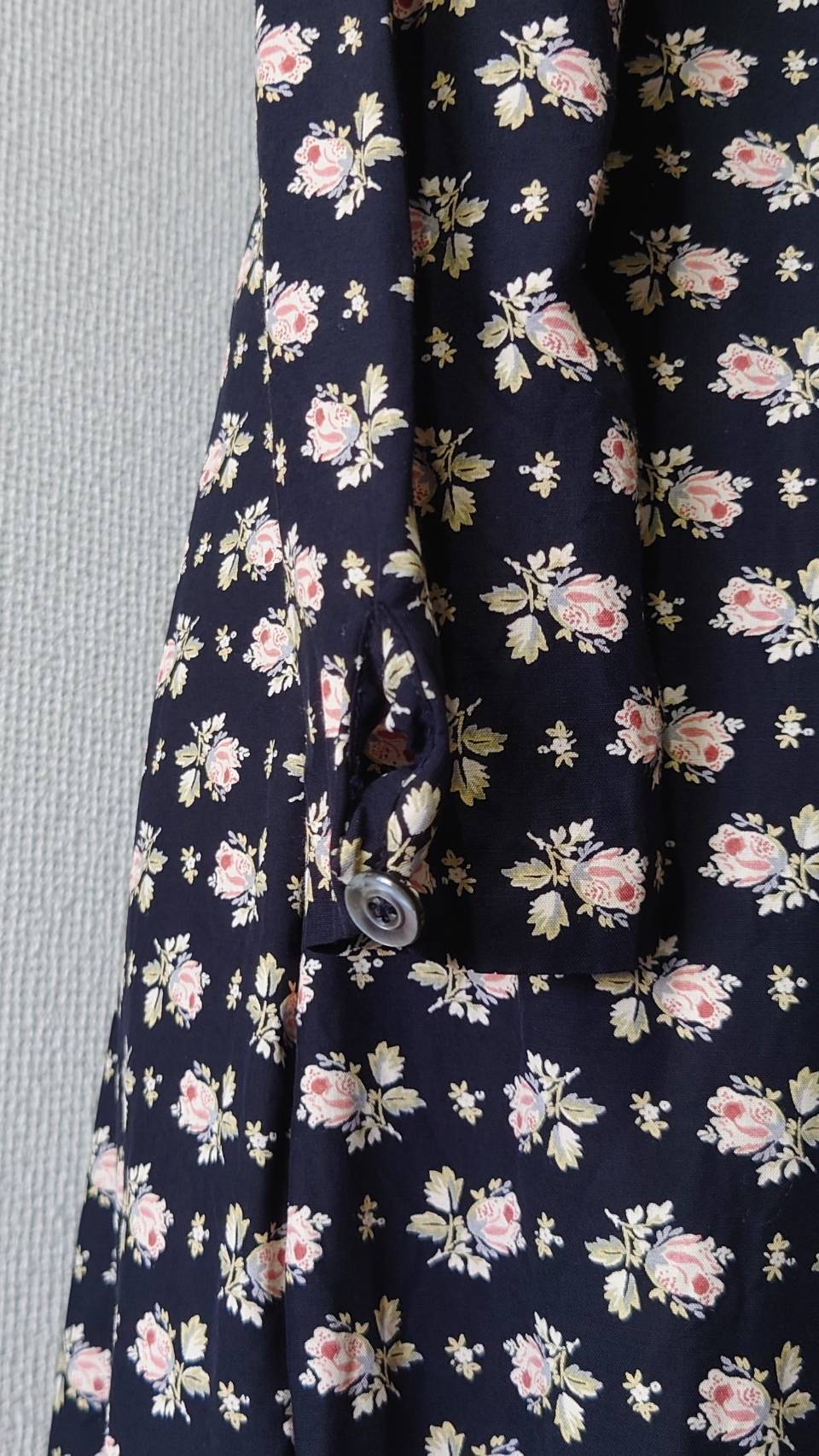 BANANA REPUBLIC レーヨン オープンカラー シャツワンピース 花柄 ブラック XS 長袖