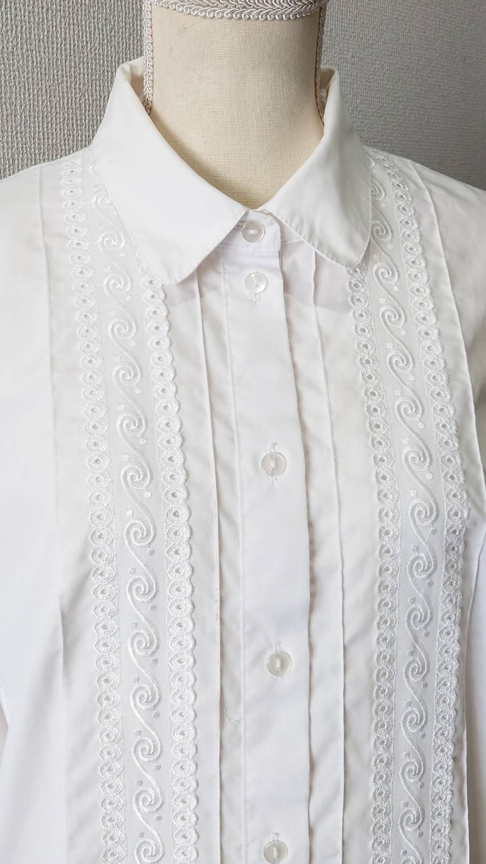 Euro Vintage レースライン シャツ ホワイト サイズ46