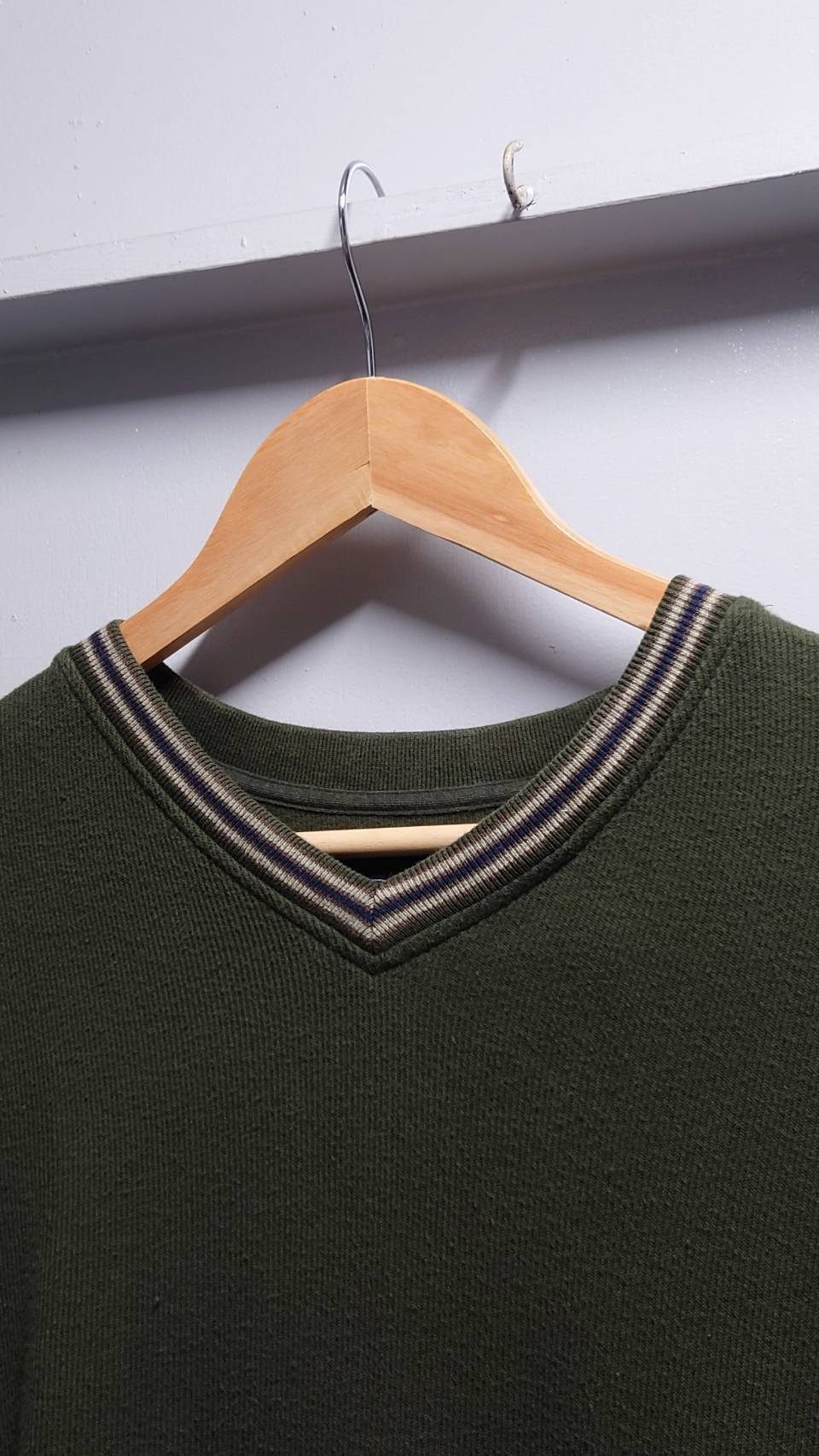 STRUCTURE USA製 リブライン Vネック スウェット オリーブ L アメリカ製