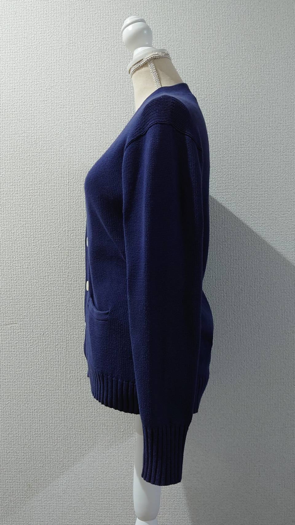 ポニーなし、完全無地で白ボタンが爽やかに映えるコットンニットカーディガン!